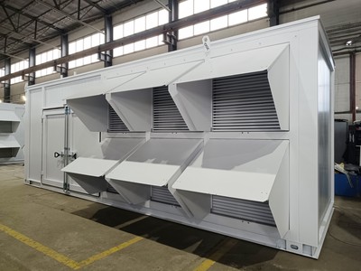 Система оснащена эффективной приточно-вытяжной вентиляцией с шумозащитными кожухами и глушителями, что обеспечивает стабильную работу оборудования при минимальном уровне шума. Топливная система включает встроенные баки объёмом до 1000 литров, гарантирующие длительную автономную работу.